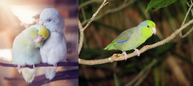 Некрупные попугайчики длиной до 18 см и весом не больше 30-40 г. Они имеют разнообразный цвет оперенья и при наличии должного ухода живут до 15 лет. Жизнерадостные и общительные птички не занимают много места и не создают лишнего шума. Они легко приручаются и любят сидеть на хозяйских плечах или пальцах.