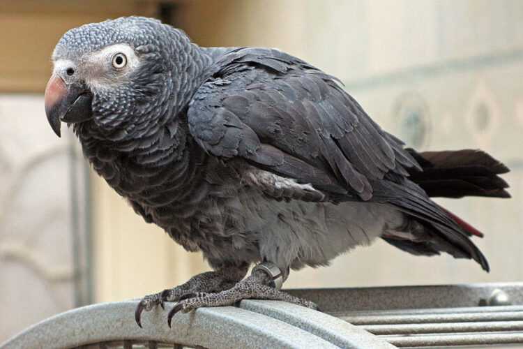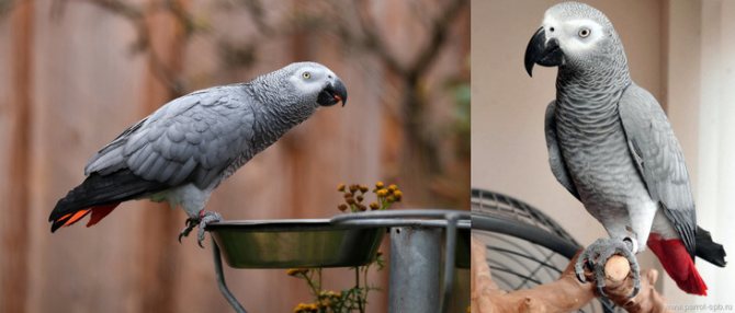 Второе название – Серый попугай. При длине около 35 сантиметров размах крыльев достигает 65 сантиметров. Имеет два главенствующих цвета в оперении: серый основной и красный цвет в оперении хвоста. Проживает в больших лесах Западной Африки.