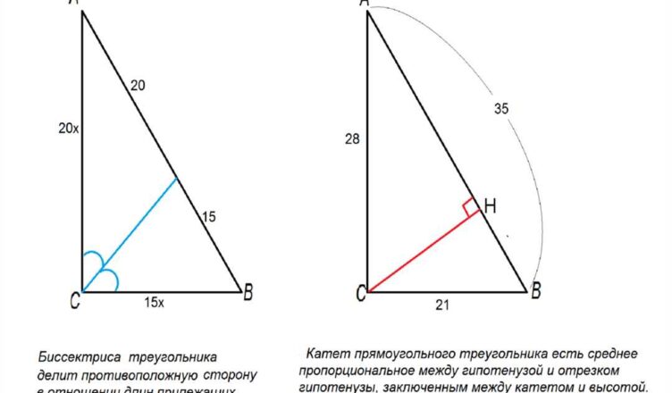 - Биссектриса угла в треугольнике равна отрезку, проведенному от вершины этого угла до противоположной стороны, с тем условием, что точки проведения отрезка касаются стороны треугольника.