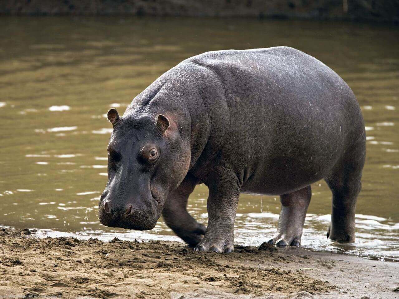 Бегемот (гиппопотам) большую часть жизни проводит в пресных водоемах, выбираясь на берег лишь в поисках пищи. Взрослой особи за одну ночь необходимо съедать 50 кг корма. Живет гиппопотам только в Африке, весит порядка 4-х тонн и конкурирует с носорогом за звание второго после слонов самого крупного вида наземных животных, но пока проигрывает. Как и носороги, этот вид страдает от браконьеров. Пока их статус считается уязвимым, но прямой угрозы вымирания нет.
