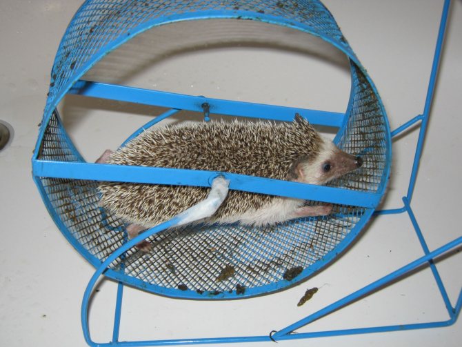 Чтобы ёжик больше двигался, в клетку ставят колесо