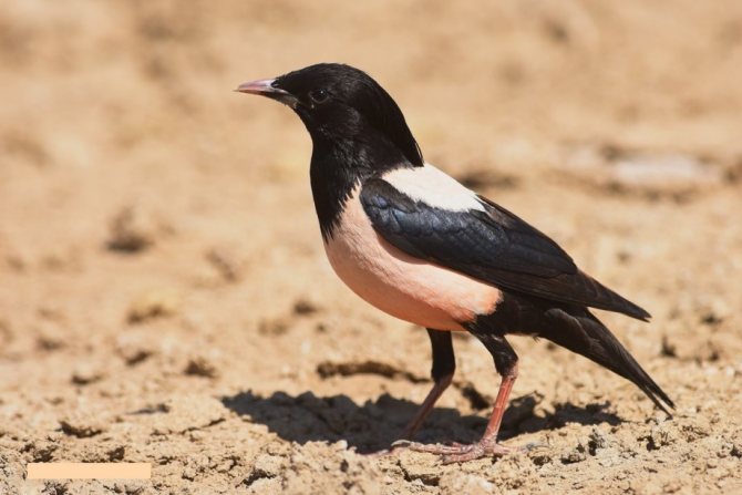 Розовый скворец получил название из-за характерного окраса. Розовая грудка, брюшко, бока, спинка в обрамлении черных крыльев, головы, шеи создают эффектный наряд весенней птице. Скворец на фото будто в праздничном одеянии. Движение стаи розовых птах похоже на плывущее розовое облако. Основная пища этих птиц – саранча.