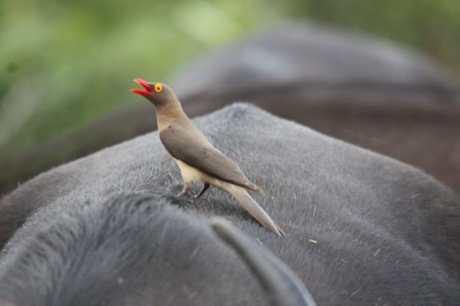 Птицы устраиваются на телах буйволов, носорогов, антилоп и других четвероногих обитателей и собирают клещей, мух, оводов и прочих паразитов, впившихся в кожу и поселившихся в шерсти животных.