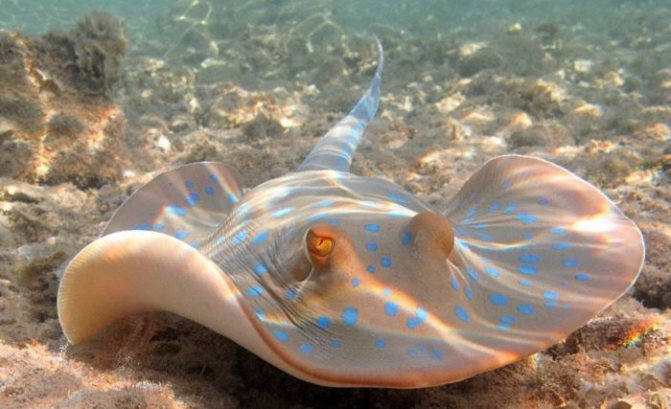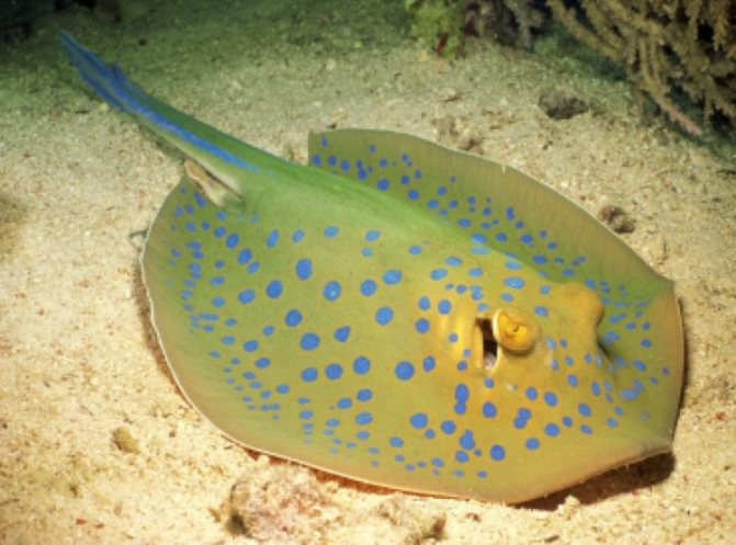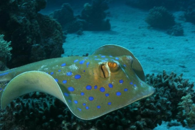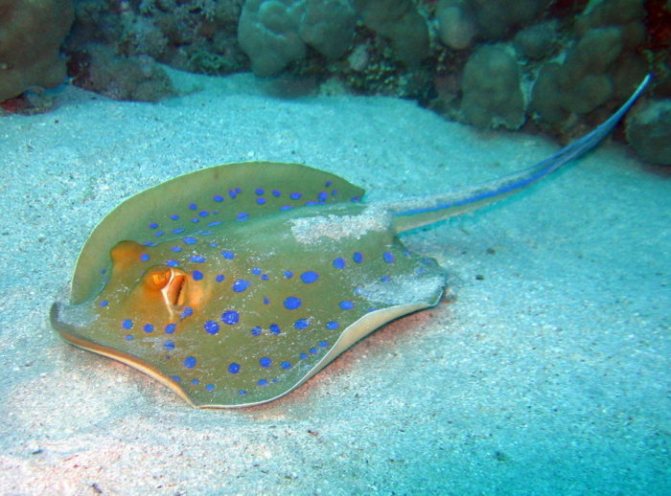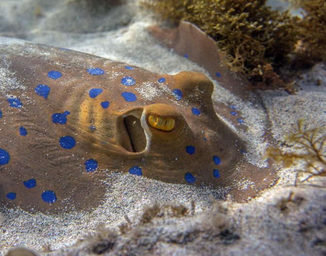 Расцветка ската дает ему возможность маскироваться на морском дне