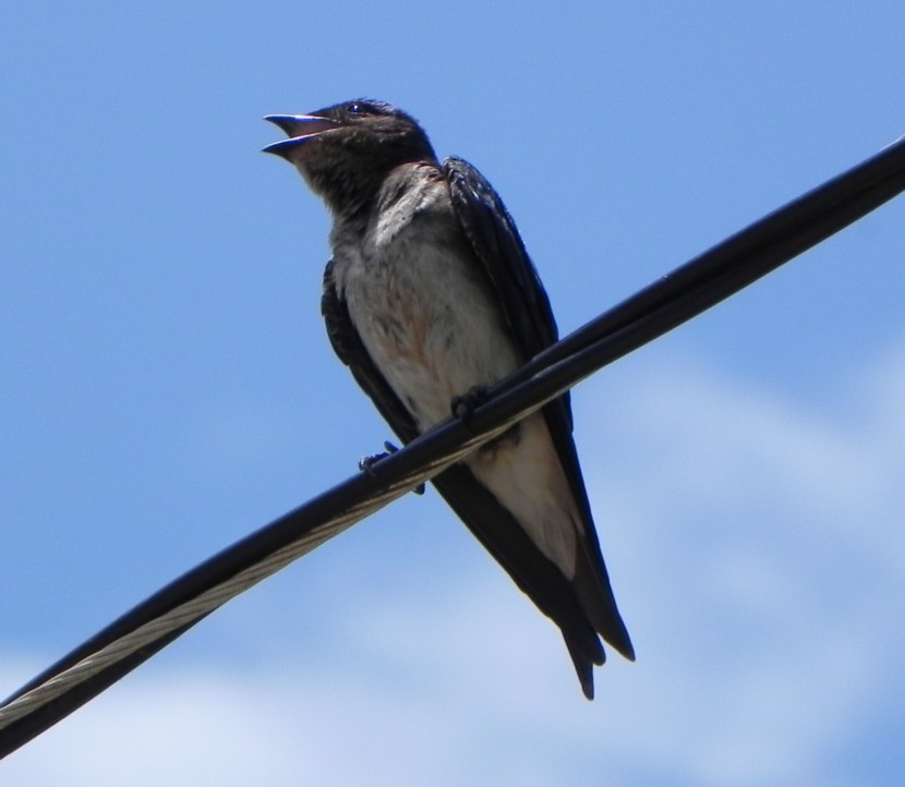 Городская ласточка чуть покороче, с менее раздвоенным хвостом; видимо, поэтому она вольтижирует с меньшей ловкостью.