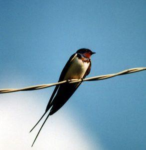 Ласточка – одна из самых симпатичных перелётных птиц. У неё длинный раздвоенный хвост с глубоким вырезом, тонкие крылья. В воздухе она совершает головокружительные акробатические трюки. У неё яркое оперение – на спине блестящие перья, а брюшко – белое.