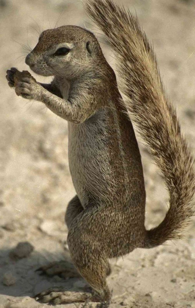 Тело суслика заканчивается длинным хвостом, выполняющим важные функции. Он компенсирует неразвитое зрение. Чувствительный хвост помогает зверьку ориентироваться под землей, ощупывая кончиком стены тоннелей. Для степных сусликов хвост служит зонтом, защищающим хозяина от перегрева.