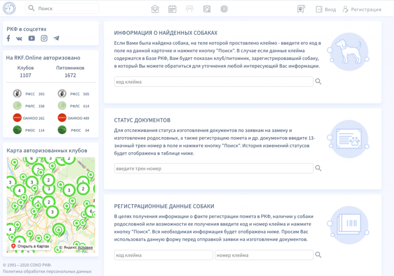 Открылся новый сервис по поиску клубов и питомников, зарегистрированных в РКФ.