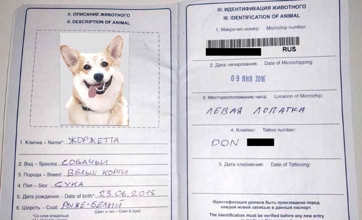 - Первая – это указание номера, присвоенного при выдаче, основных сведений о домашнем любимце (какой он породы, как его зовут, когда родился, какого окраса, есть ли клеймо на ушке или микрочип, установленный под кожу). Также в этой части помещаются данные хозяина и заводчика, продавшего собаку (адрес и ФИО).