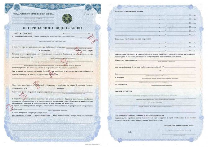 На настоящих бумагах стоят печати ответственного учреждения, подписи руководителей и эмблемы кинологических организаций. Ознакомиться с образцами необходимой документации можно на сайте РКФ.