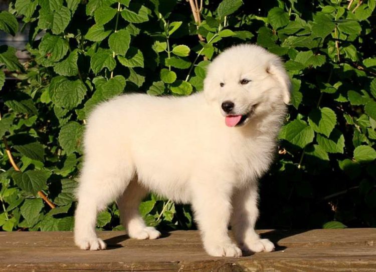- интересен контраст окраса породы: обладая белоснежной шерстью, овчарка имеет черную кожу.