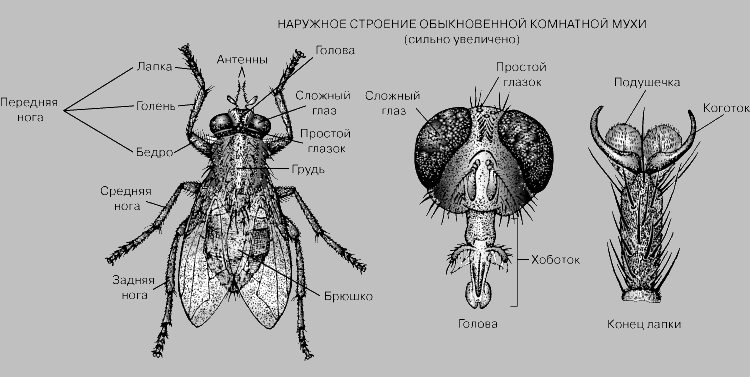 Посмотрите на картинку. Так ли вы себе представляли это существо? Будучи настолько крохотной, муха наделена всеми средствами, которые необходимы её для существования. Именно благодаря этим наростам на лапках она может держаться за любую отвесную поверхность, зависать прямо на потолке и двигаться так, как ей хочется. Благодаря ворсинкам, которые покрывают тело мухи, влага, которая попадает на неё, не задерживается на теле.