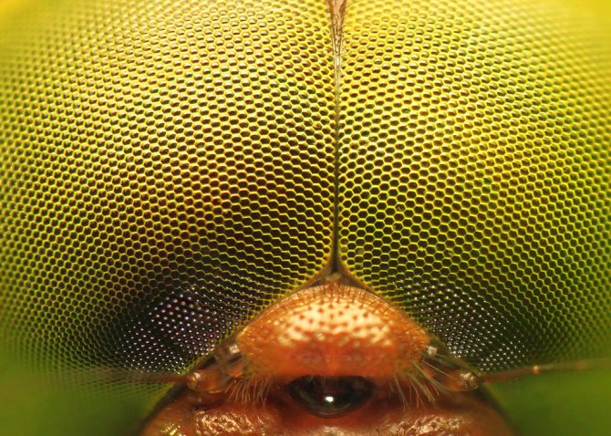 - фасеточное устройство глаз позволяет фиксировать одновременно все вверху, внизу, слева, справа и впереди и дает возможность быстро отреагировать на приближающуюся опасность;