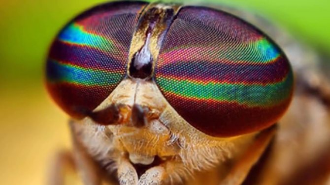 Благодаря своему строению глаз, мухи способны видеть оттенки, которые на доступны человеку. Это же касается и ультрафиолета. Благодаря «особенным» органам зрения, крылатый вредитель видит мир более радужно.