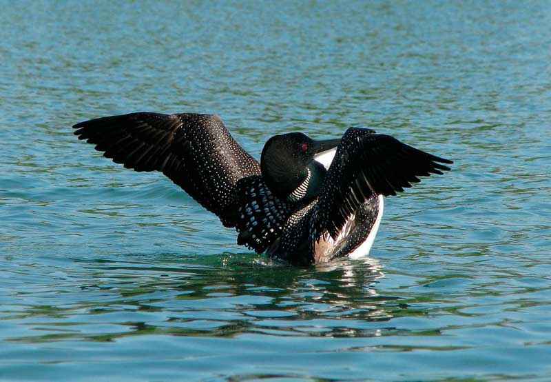 Из ныряльщиков в средней полосе легко наблюдать, пожалуй, только чомгу. Ее хорошо отличает острый красный клюв и рыжий «капюшон» на тонкой белой шее. Птица не очень пуглива, часто и охотно ныряет, иногда с птенцами на спине. На небольших речках с завалами и крутыми берегами можно встретить зимородка из отряда ракшеобразных. Его легче заметить на лету, когда он, тихо и однообразно посвистывая, быстро проносится над самой водой как большое изумрудное насекомое. У бакланов, в отличие от других ныряльщиков, перо намокает в воде, и после ныряния он вынужден его сушить.