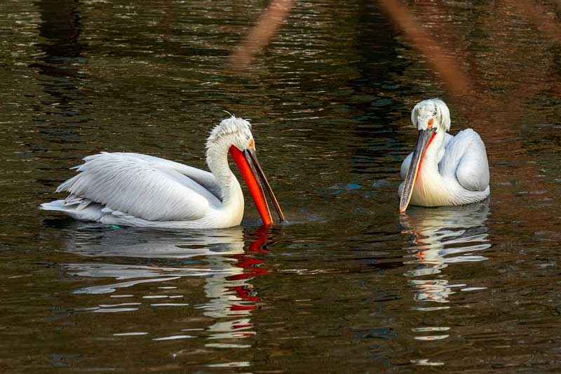 Перья в хохолке на голове птицы распадаются по сторонам, словно листья пальмы. Поистине тропические и размеры пеликана. На фото птицы озер могут казаться средними.