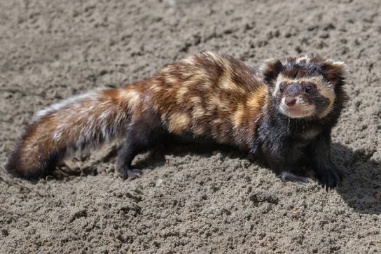 Миниатюрный хищник из семейства куньих относится к 1-й охранной категории, популяция вымирает с каждым годом. Тело зверя в длину 30–35 см, хвост пушистый. Окрас пестрый – рыжий с вкраплениями темно-бурого. На морде возле носа и над глазами – белые участки, напоминающие перевязь. Предпочитает степные зоны, человеческого жилья избегает. Охотится на грызунов. К исчезновению вида привели распашка земель, где обитали животные, хозяйственная деятельность людей. Встречи со зверем единичны.