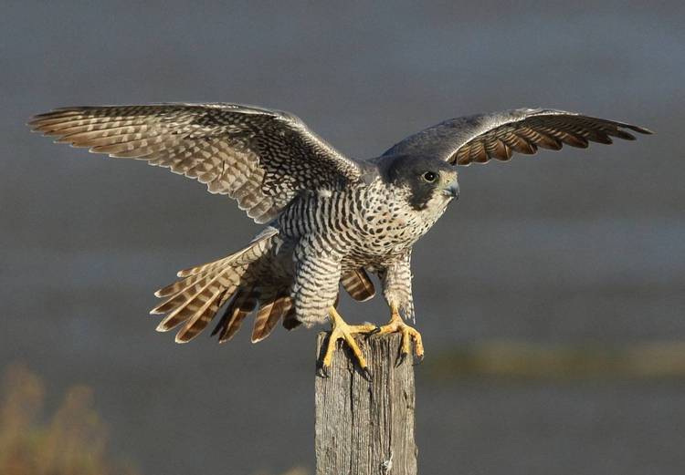 Хищник из семейства соколиных обитает в поймах крупных рек. Занимает прошлогодние гнезда других пернатых на отвесных каменистых или глинистых берегах. Окрас птицы графитово-серый, голова темнее тела. По бокам ее расположены черные полоски. Грудь и брюхо светлые, с крапинками. Браконьерство и фактор беспокойства привели к угрожающему сокращению популяции.