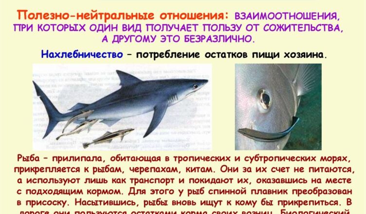 Акула и рыба прилипала: тип взаимоотношений и рацион питания