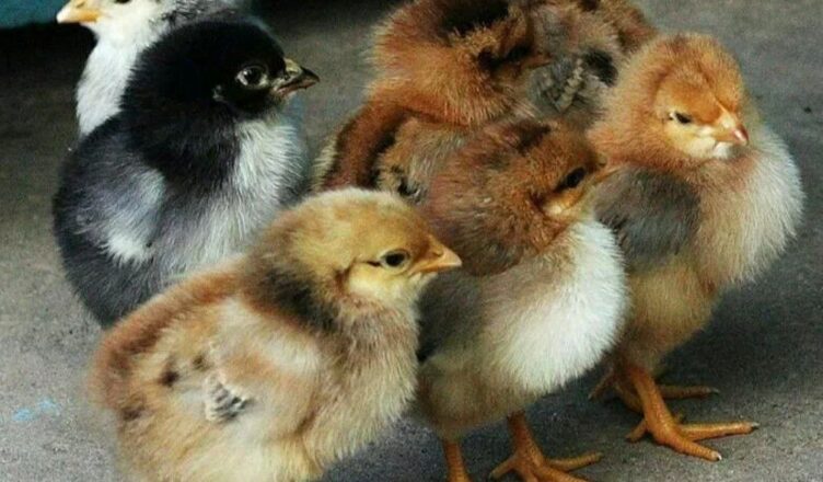 На фото изображены цыплята разных пород, включая чешскую полосатую и несушку полосатую.