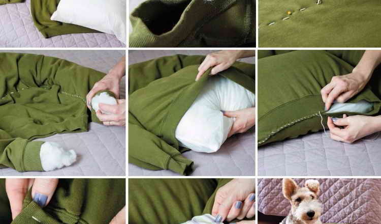 Если вы используете вместо подушки другие материалы, например старые одеяла или одежду, распределите их равномерно и не забывайте выравнивать их внутри лежанки.