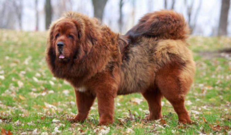 Тибетский мастиф известен своей пышной шерстью, которая требует особого ухода. Он также имеет длинную морду и круглые глаза, что придает ему уникальный и мощный вид.