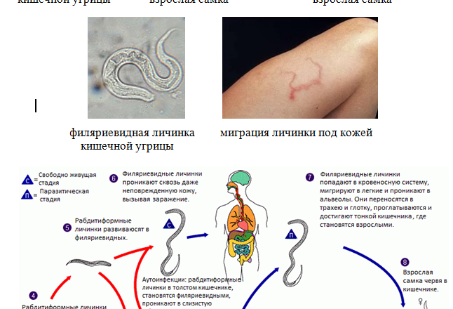 - Высыпания на коже — чаще всего папулы и/или везикулы в местах, где паразит попал в кожу. Они могут быть зудящими и болезненными.