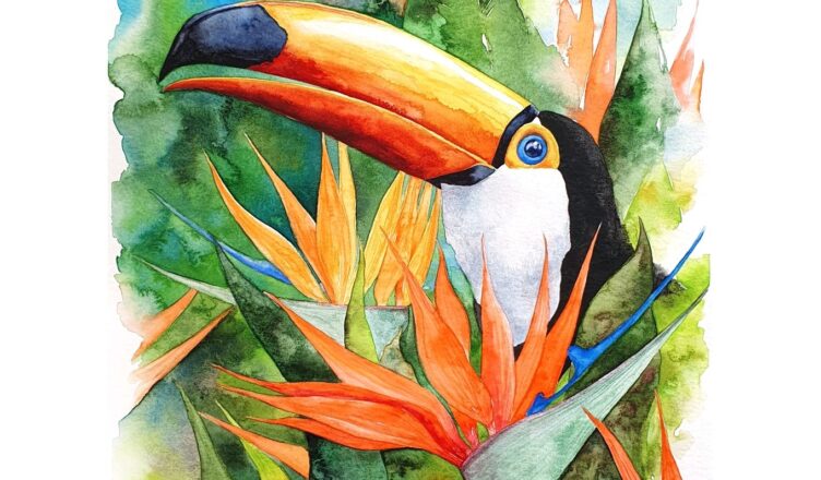 Тукан, тропическая птица. Как нарисовать цветными карандашами