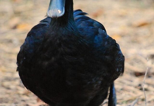 • Окраска: самец имеет черное оперение с зеленоватым отливом на шее, а самка – темно-коричневое оперение с более светлыми пятнами.